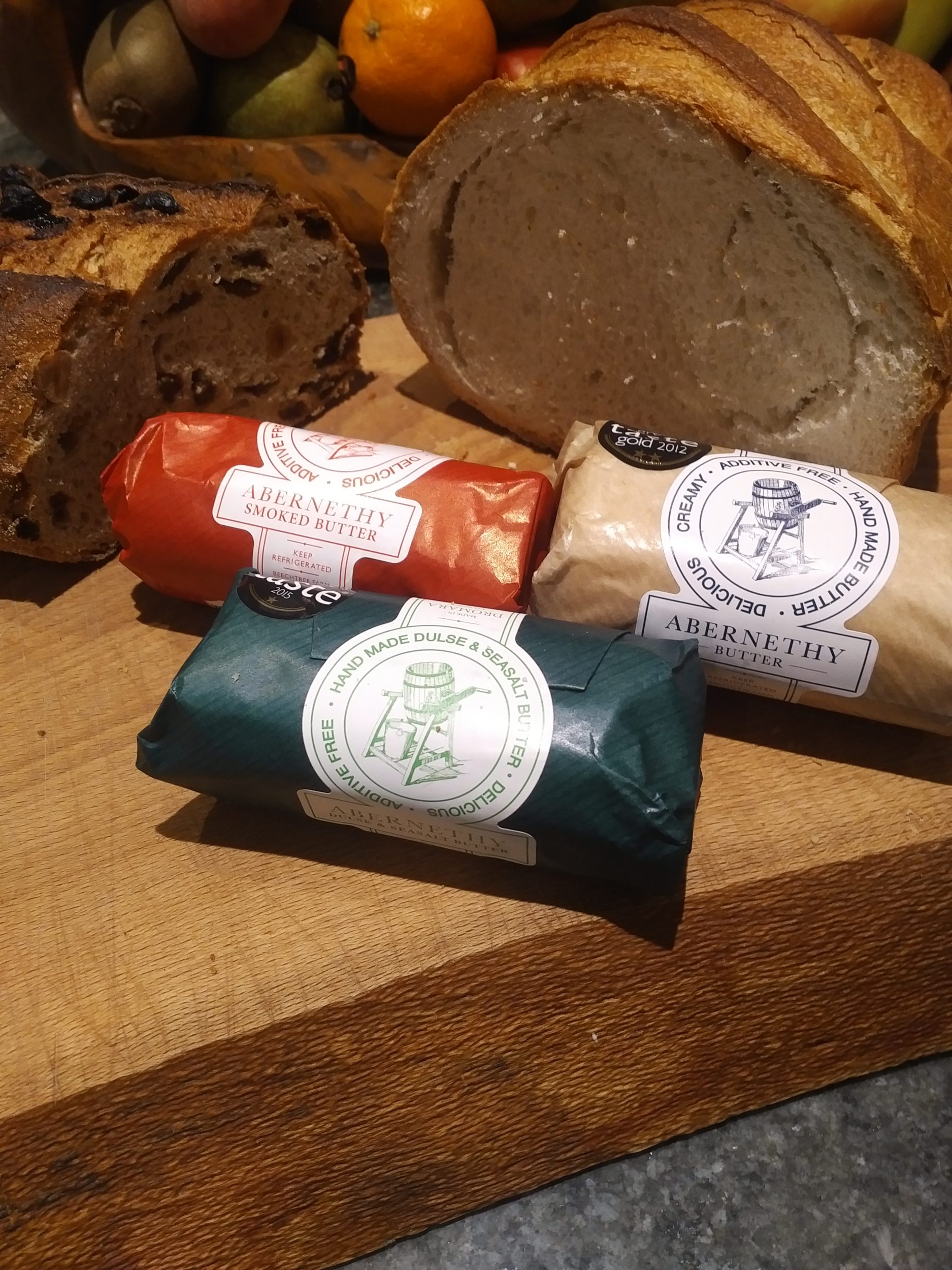 Abernethy Butter is made by hand using traditional methods.The cream is bought from a local farmer, who lets his cows graze on the green fields in the Lagan valley and pasturises his own milk.The cream is churned until it separates into butter and buttermilk.Then the butter is put into a large bowl and washed by…